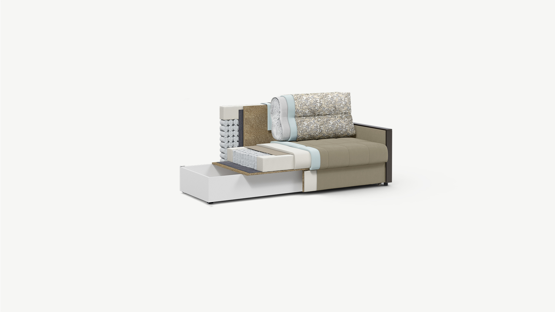 Замечательный диван, отлично вписался в интерьер. Жесткий, как я люблю. Цвет "капучино" очень приятный. Большой ящик для белья.