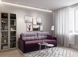 Недостатки: К недостаткам я отношу то, что спинка дивана за подушками обита однотонной светлой тканью, хотя весь диван обит фиолетовой тканью. Почему нельзя было всю спинку обить тканью по цвету дивана не понятно. Это очень портит впечатление о диване. На фото, которые размещены на сайте, я не обратила на это внимание.
