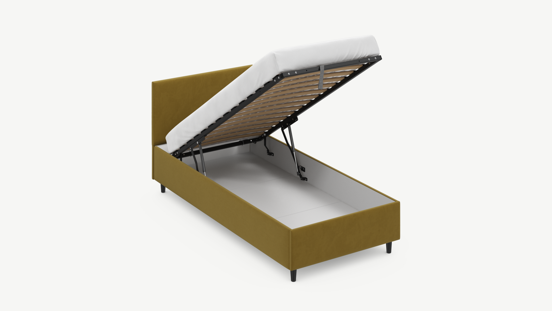 Регулируемый подъемный механизм с газовыми амортизаторами позволяет плавно и бесшумно поднимать и опускать спальное место.