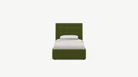 Изголовье декорировано рельефным рисунком стежки в крупный квадрат, получившим особую фактуру за счет глубины шва.