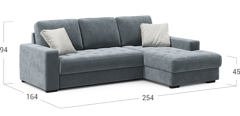Секция канапе позволяет принять положение полулежа. Под данной секцией расположен вместительный бельевой короб.