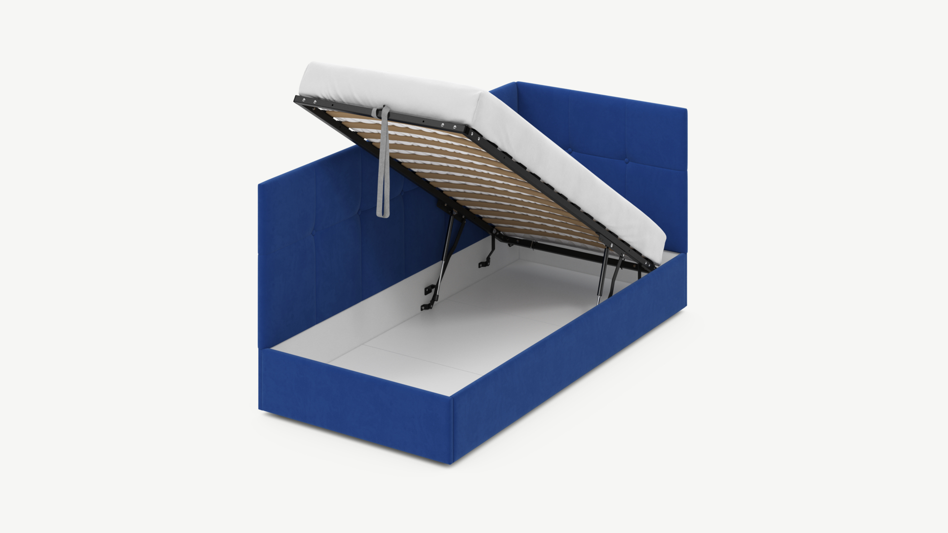 • Скрытая под основанием вместительная емкость без внутренних перегородок позволяет использовать всю площадь подкроватного пространства для хранения вещей.